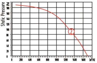 ①性能參數:風輪直徑為250mm,由4極和6極額定電壓為230/400V,頻率50Hz,分單相電容運轉和三相異步運轉電機組成。可提供2600m3/h和1700m3/h的風量要求。