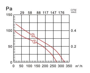 ①性能參數:額定電流在0.22~0.25A,額定電壓230V,輸入功率為35W,最大風量可達270/320m3/h,產品轉速2800/3200RPM,電容為1uf,工作噪音低於60dB(A)