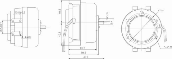 型號 | 額定電壓 | 頻率 | 輸入功率 | 輸出功率 | 額定電流 | 轉向 | A mm | B mm | C mm |