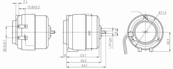 型號 | 額定電壓 | 頻率 | 輸入功率 | 輸出功率 | 額定電流 | 轉向 | A mm | B mm | C mm |